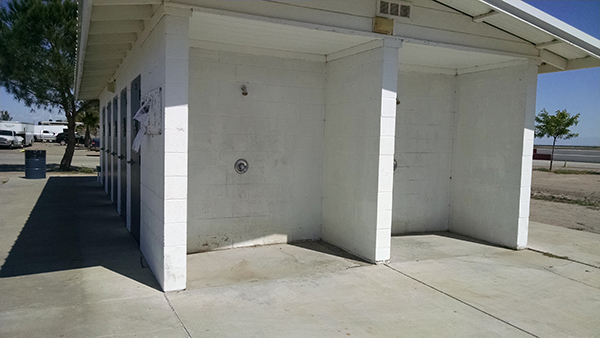 Seriously? No... this is a joke, right? I check out the other building at the other end of the paddock, and it's a mirror image, but no better. And, I didn't bring anything that would pass for a swimsuit. This is EPIC FAIL! I never even considered that there wouldn't be a shower with a door you could close. All the other tracks I run at have them. So, I start mulling over what I'm going to do. Turns out, behind me (taking the picture) there is nothing. No parking, no reason to walk there, really. Just nothing. So, in a way, it's kind of private, if no one comes by. Should I put up a sign on the approach path? Recruit someone to stand guard? Shower at midnight, when everyone is asleep? Fortunately, as I continue my paddock exploration, I find the only bathroom with an enclosed shower.